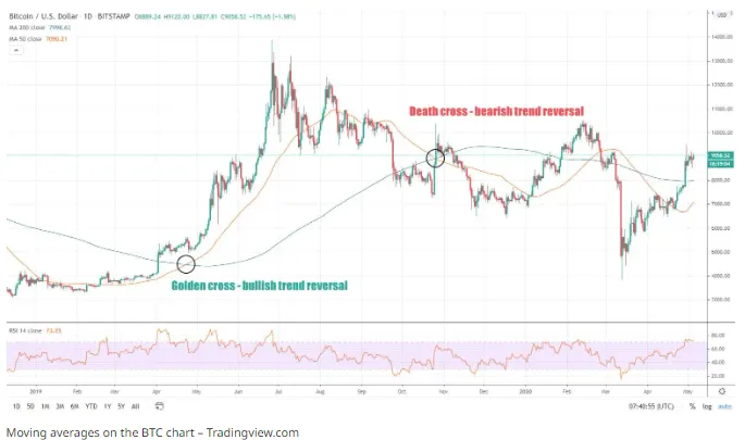 암호화폐 차트에서 가장 일반적으로 사용되는 이동 평균값은 50일과 200일 단위입니다.