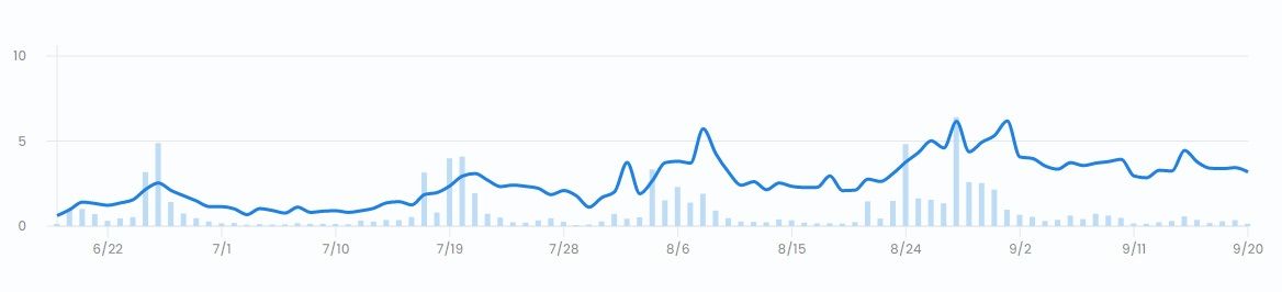 전체적으로 7월 말부터 9월 중순까지 NFT 매출은 2억 1,170달러에서 26억 달러로 1,144% 급증했다.