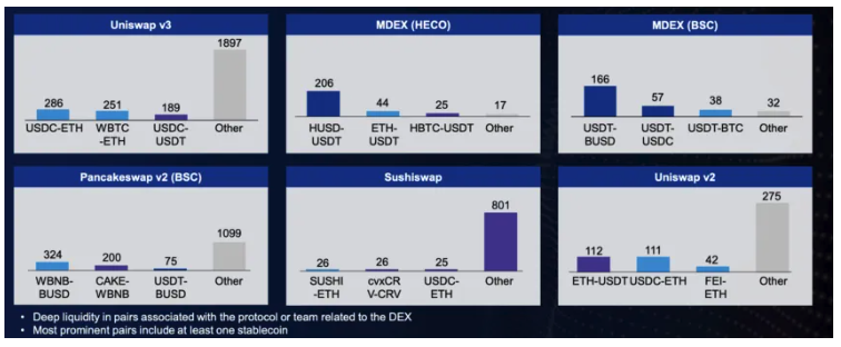 밸런서(Balancer)와 같은 AMM은 가중치별 솔루션을 통해 자산의 가격 민감도와 내재 변동성을 낮춥니다. 이 외에, 안정적인 가치 유지를 목적으로 하는 스테이블코인을 주로 거래하는 커브 파이낸스가 있습니다.