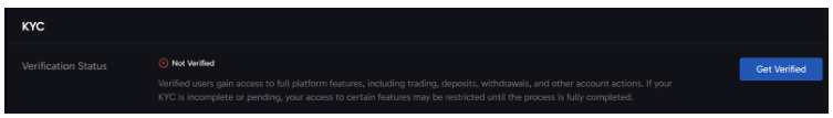 - KYC(고객 알기 제도) 인증을 완료하세요 — 일반적인 절차대로 신분증, 셀카, 주소 증명 등입니다.