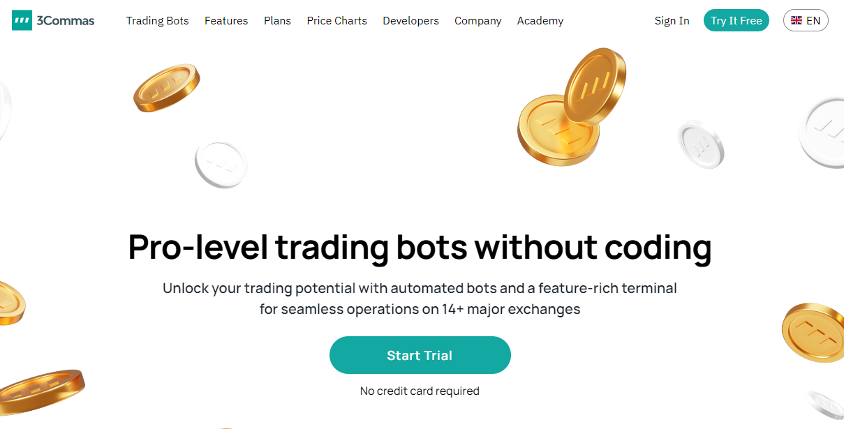 3Commas는 다양한 트레이딩 도구와 사용자 친화적인 인터페이스, 투자 전략을 갖춘 암호화폐 거래 플랫폼입니다. 현물과 파생상품을 넘나들면서 여러가지 거래 전략을 자동화할 수 있습니다. 트레이더들은 시장이 상승장인지 약세장인지, 횡보장인지와 상관 없이 트레이딩 봇을 이용해 정밀한 거래가 가능합니다.
