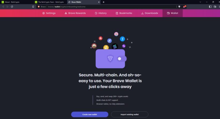 브레이브의 원래 암호화폐 지갑은 메타마스크의 포크였다. 브레이브가 개발됨에 따라 프로젝트 팀은 지갑 확장을 통해 최고 수준의 보안과 개인 정보 보호가 불가능하다고 판단했다. 브라우저에 내장된 통합 암호화폐 지갑으로만 달성될 수 있다는 것을 깨달은 것이다.