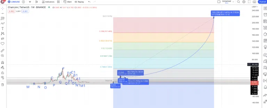 피보나치 확장 수준을 사용하면 2030년의 고점은 217.07달러로 표면화될 수 있다. 단, LINK 채택이 증가하고, 동일한 성장 경로를 따른다는 전제조건이 있다. 또한 링크의 가격이 이 수준에 도달하기 위해서는 2028년까지 이전 고점인 52.88달러를 먼저 넘어야 한다.