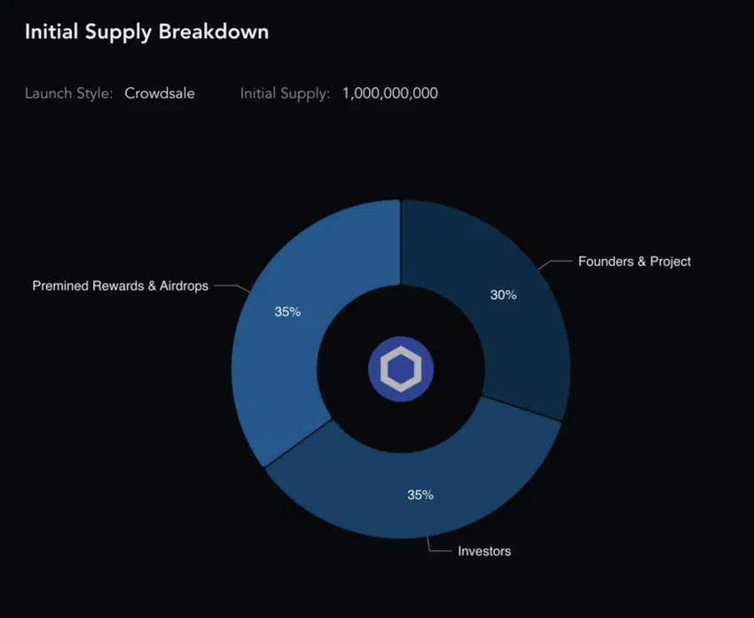 LINK 토큰의 공급 상한선은 10억 개다. 2023년 2월 10일 현재 전체 공급의 51%가 순환 공급을 하고 있다. 체인링크의 토크노믹스 모델에서 최대 장점은 아래에서 볼 수 있는 것처럼 투명한 분배 원칙에 따라 10억 개의 토큰이 모두 초기에 제공되었다는 것이다.