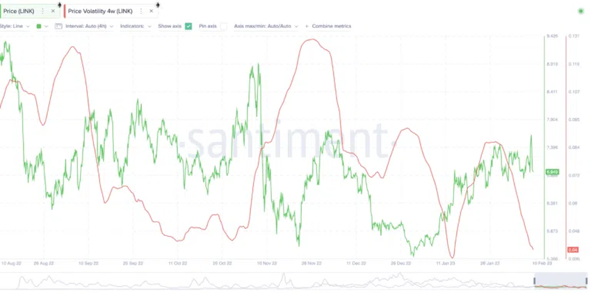 LINK 토큰의 갑작스러운 가격 하락이 걱정되는 분들이 있다면 다음 차트에 주목하기 바란다. 가격 변동성을 나타내는 빨간색 선이 하향 추세를 보이며, 지난해 8월 이후 변동성이 감소할 때마다 가격이 소폭 상승했다. 링크 단기 가격 예측에 대해 낙관론을 유지해도 좋은 이유이다.