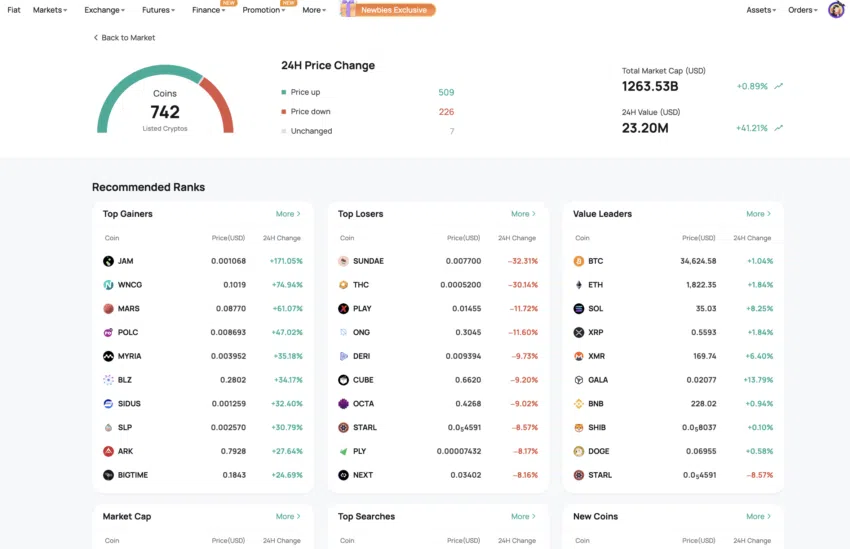 앞서 언급했듯이 코인엑스에서는 700개 이상의 암호화폐를 거래할 수 있다. 코인마켓캡의 현물 거래 데이터에 따르면 가장 인기 있는 통화쌍은 BTC/USDT, ETH/USDT, SOL/USDT, STARL/USDT 등이다. 코인엑스는 무기한 선물 거래도 지원하며 현재는 BTC, SOL, ETH, SHIB가 가장 많이 거래된다.