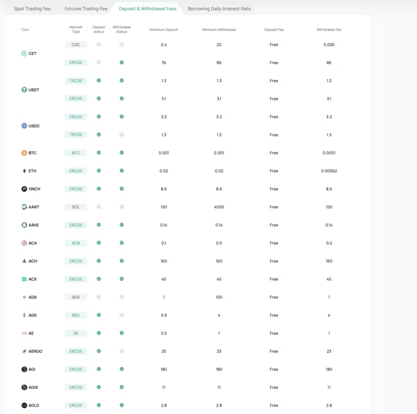 바이낸스와 마찬가지로 코인엑스는 거래 가능하며 거래 수수료 할인을 받는 데 사용할 수 있는 자체 암호화폐인 ‘코인엑스 토큰(CET)’을 보유하고 있다. 코인엑스 스마트 체인에서 가스비를 지불할 때 CET를 사용할 수 있다.