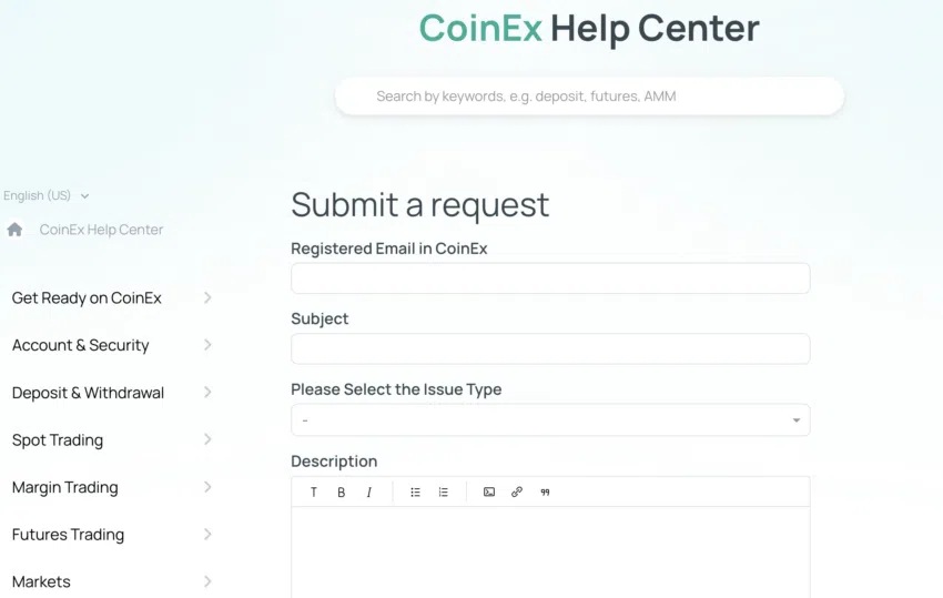 코인엑스는 신속한 티켓팅 시스템을 통해 신뢰할 수 있는 고객 지원 체계를 갖추고 있다. 상단에 “더 알아보기” 메뉴에서 도움말 센터를 클릭하면 대부분의 문제에 대한 솔루션을 찾을 수 있다. 원하는 답변을 찾지 못하였다면 사이트 우측 하단에 “요청 제출” 문제를 설명하고 세부 정보를 제공한 후 기다려야 한다.