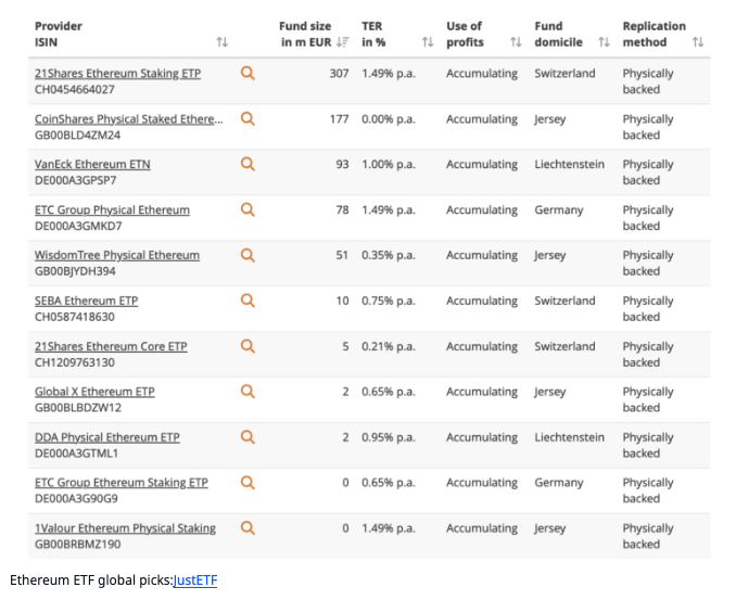 - 독일 (ETP): ETC 그룹 실물 이더리움(ETC Group Physical Ethereum)