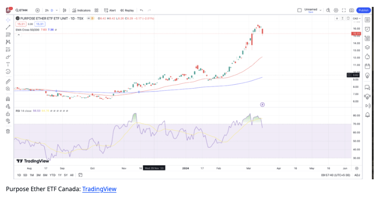 | 사례 | 목적 이더 ETF(캐나다), 그레이스케일의 ETHE ETF(미국) | 프로셰어스 이더리움 전략 ETF(미국), CI 갤럭시 이더리움 ETF(캐나다) |
