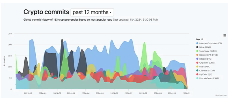 암호화폐의 펀더멘털 분석에는 개발자들의 협업 플랫폼인 깃허브(GitHub) 활동도 확인합니다. 높은 활동은 헌신적인 개발 팀이라는 것을 증명할 수 있으며, 이는 장기적인 성장 잠재력을 시사합니다. 이처럼 개발자의 기여도를 추적함으로써 프로젝트의 진행 상황과 향후 계획을 파악하는 데 있어 유익한 정보를 얻을 수 있습니다.