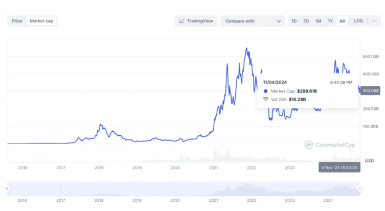 Sponsored Sponsored- 시가총액(Market capitalization): 시가총액은 네트워크의 규모를 나타내지만, 전통 시장에서의 수익과는 다릅니다. 이는 단순히 유통 중인 공급량 × 토큰 가격입니다.
