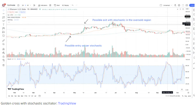 골든크로스는 상승 모멘텀을 의미합니다. 자산의 종가와 최근 가격 변동을 비교하는 스토캐스틱도 유용합니다.