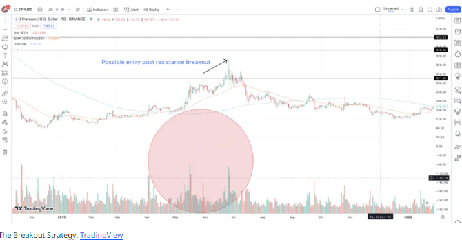 - 첫 번째 이익 실현 구역은 저항에서 지지로 변한 구역입니다. 이후에는 50일 EMA와 200일 SMA 수준에서 이익을 실현할 수 있습니다.