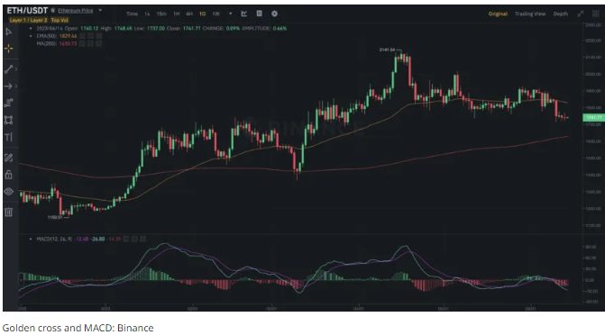 이동평균 수렴/발산 지수(MACD)는 골든크로스 분석에 도움을 줍니다. MACD도 골든크로스와 같이 이동평균을 따라 작동하기 때문입니다.