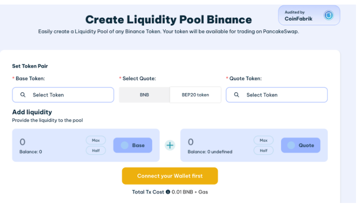 토큰을 만든 다음, 팬케이크스왑(PancakeSwap)에서 유동성 풀을 설정하세요.