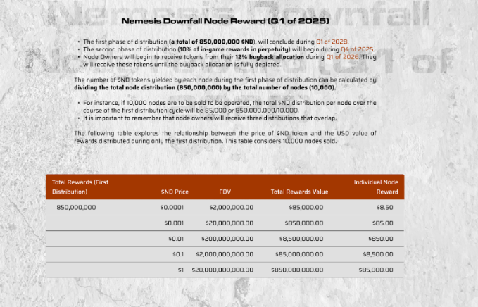 ➤ 네메시스 다운폴 노드는 게임의 분산형 네트워크를 강화하여 게임 호스팅과 콘텐츠 배포, 보안 등을 처리하는 동시에 운영자에게 $ND 토큰과 게임 내 수익의 일부를 보상합니다.