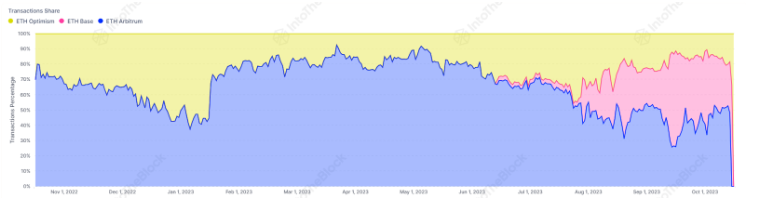 위 차트에서는 이더리움 레이어2 간의 트랜잭션 수를 비교하며 성과를 분석할 수 있습니다. 이는 보다 올바른 투자 결정을 하는 데 도움이 될 수 있습니다.