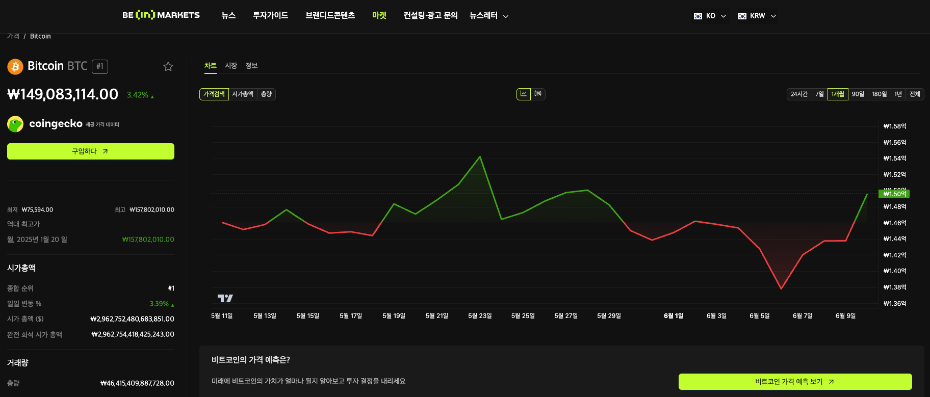 - 비인크립토: 비인크립토에서는 주요 코인에 대한 가격 정보 및 가격 예측 정보를 제공합니다.