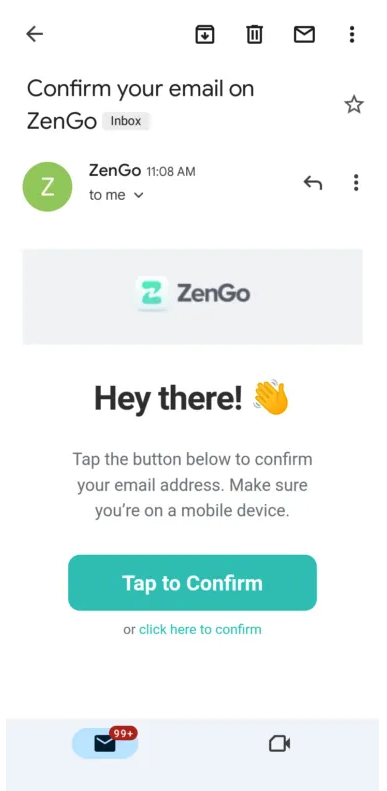 3. 이메일을 확인하면 젠고 앱으로 다시 이동합니다.