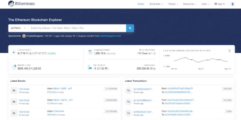 전문 용어로 말하자면, 이더스캔은 이더리움의 블록 탐색기에 지나지 않습니다. 이더스캔은 블록의 속성과 블록 간의 상호작용 방식을 기반으로 블록의 모든 활동을 명확하게 그려 탐색기이자 분석 도구가 됩니다. 여기에는 지갑 주소, 거래 수수료, 토큰, 스마트 컨트랙트, 에어드랍까지 포함됩니다.