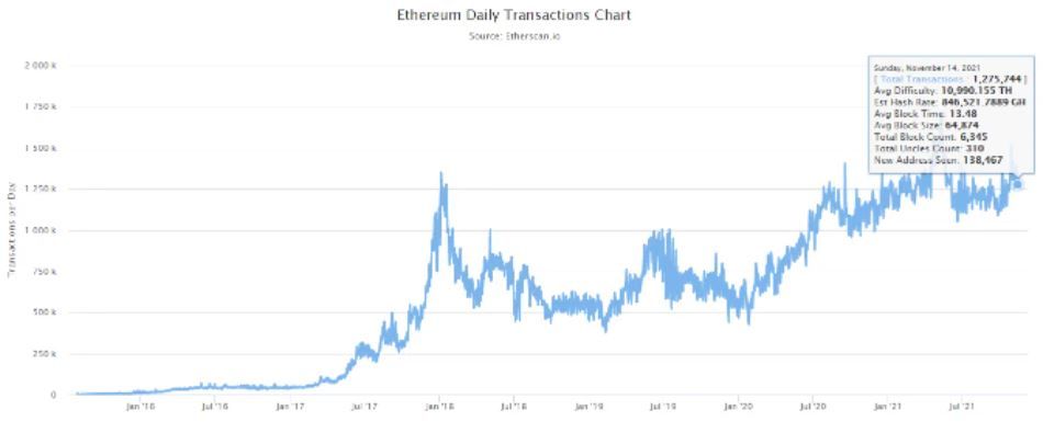 - 총 엉클(Uncles) 수: 채굴과 제출을 동시에 수행하여 고아 블록(orphan block)을 만듭니다. 그러나 비트코인의 고아 블록들과 달리 이더리움의 엉클 블록은 엉클에게 포함 보상을 줍니다.