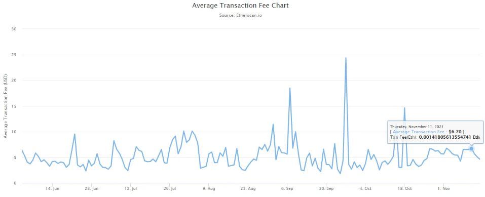 예를 들어, 평균 거래 수수료 차트를 보면 해당 시점에서 이더리움을 사용할 가치가 있는지 알 수 있습니다.