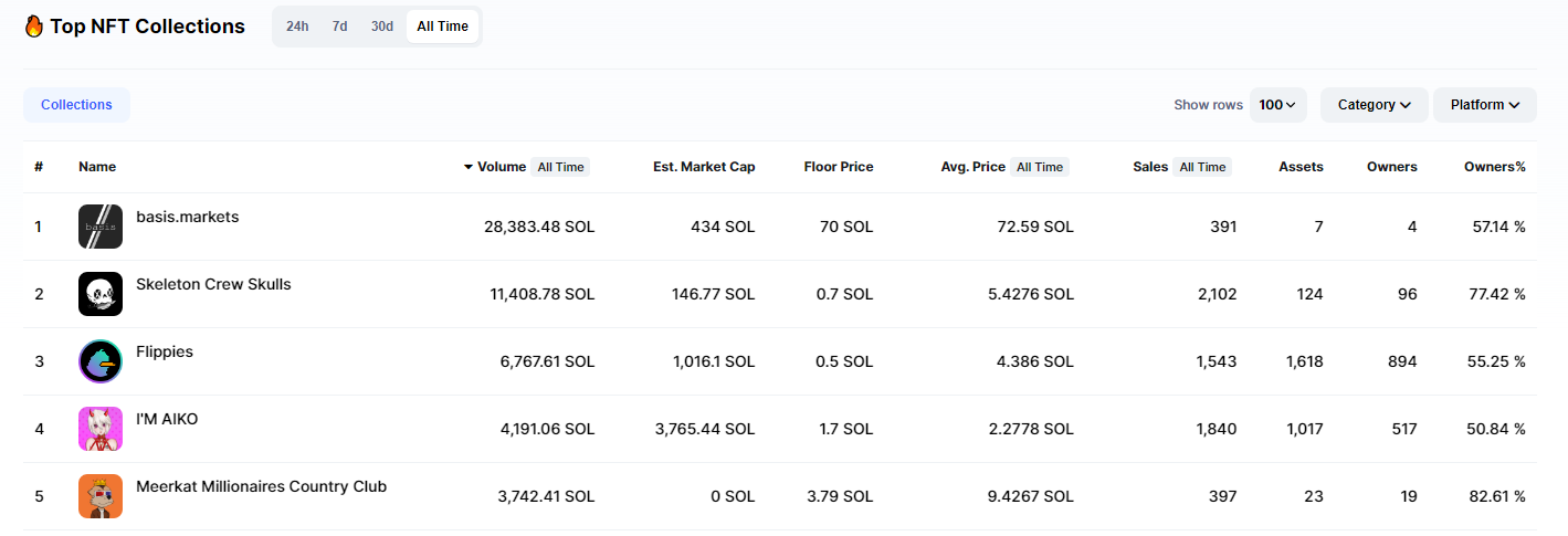 특정 NFT 컬렉션에 대한 시가총액 추정치를 얻으려면 래리티툴스(rarity.tools) 또는 아이시툴스(icy.tools)를 사용할 수 있다(래리티의 경우 “All Collection” 섹션으로 이동하려면 스크롤해야 한다). 새로운 프로젝트는 대형 NFT 도구 플랫폼에 리스트되지 않을 수 있다는 사실을 알아두면 좋다.