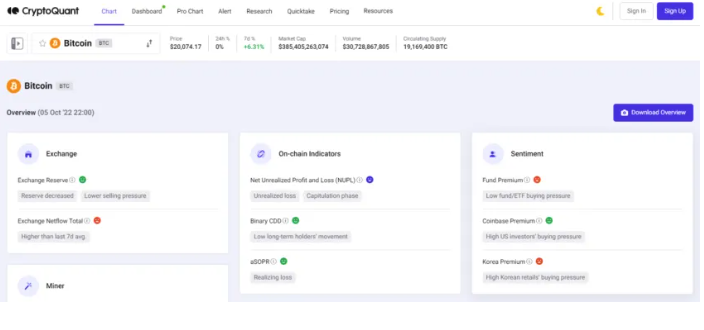 - 자금 흐름 표시기, 채굴자 흐름 등 다양한 메트릭스 제공