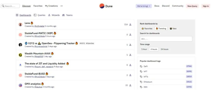 듄(Dune)은 사전 제작된 데이터베이스의 간단한 SQL 쿼리를 사용해 이더리움 데이터를 쿼리하는 데 필수적인 블록체인 분석 도구입니다. 완전히 새로운 스크립트 대신 데이터베이스를 쿼리하여 블록체인에 호스팅된 거의 모든 정보를 수집할 수 있습니다.