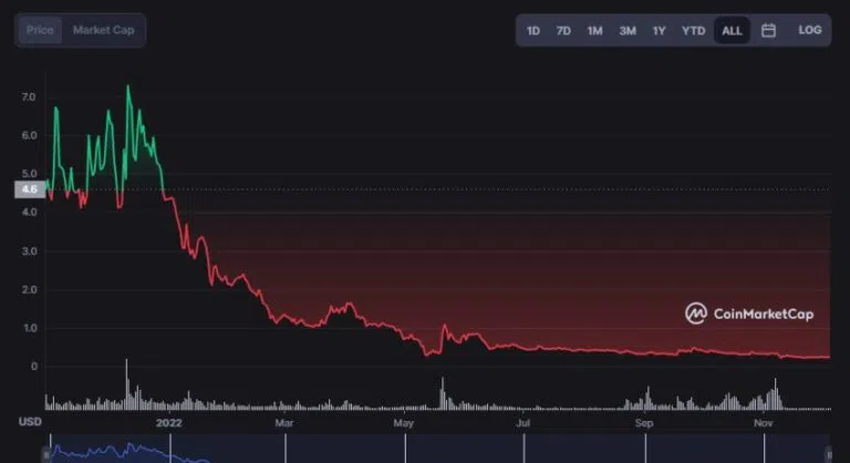 GODS 토큰은 작성 당시 24시간 만에 3.7%, 7일 만에 3.9% 상승했다. 하지만 2022년 11월 이후 23% 감소했다. GODS는 2021년 11월부터 2022년 1월까지 고점을 기록했으며, 2021년 12월 10일 8.80 달러로 사상 최고치를 기록했다. 하지만 2022년 11월 9일이 되자 GODS는 사상 최저인 0.21달러로 내려왔다.