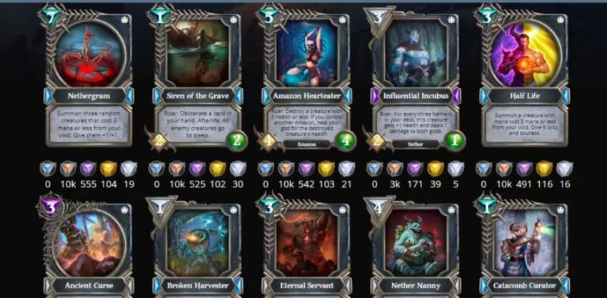 모든 플레이어는 6개의 신 모두를 포함하는 웰컴 세트 카드 덱(70개의 개별 카드)으로 시작한다. 여기에는 NFT가 아닌 스탠다드 코어 카드가 포함된다. 더 많은 카드를 얻으려면 다음과 같은 작업을 수행하면 된다.