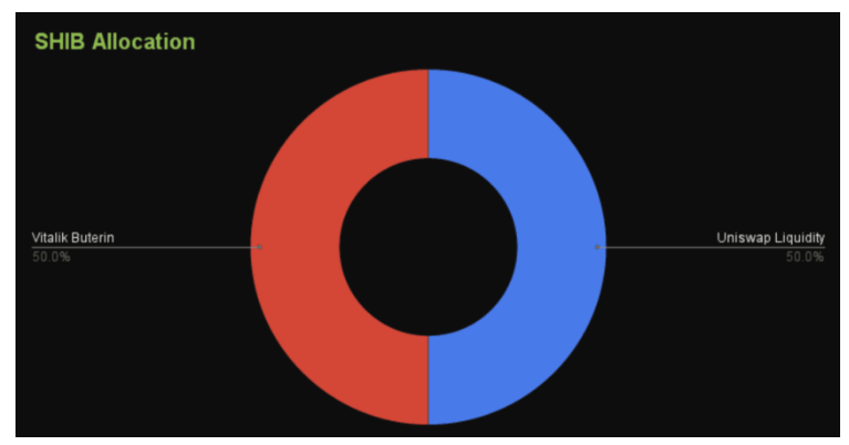 - 초기 분배: 총 공급량의 50%는 이더리움 창시자 비탈릭 부테린에게 보내졌고, 나머지 50%는 유니스왑 유동성 풀에 잠겨 있었습니다.