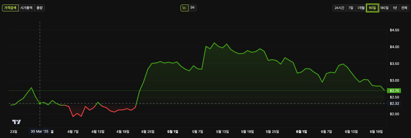 | 토큰 가격 | 2.70달러(2025년 6월 21일 기준) |