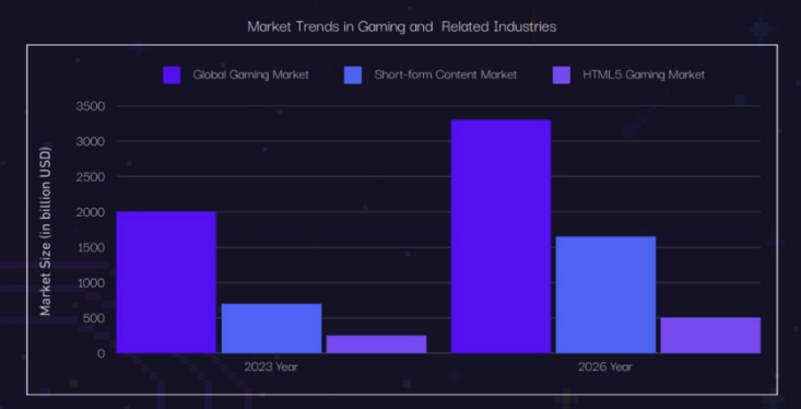게임 산업은 2023년에 2000억 달러의 가치를 지녔으며(세계적인 회계법인인 PwC의 글로벌 엔터테인먼트 및 미디어 전망 2022-26에 따르면), 2026년에는 3210억 달러를 초과할 것으로 예상됩니다. 이러한 성장 전망은 짧은 형식의 콘텐츠의 인기에 힘입은 것으로 이 특정 시장은 2023년 680억 달러에서 2026년 1650억 달러로 성장하여, 연평균 성장률 34.5%를 기록할 것으로 보입니다.