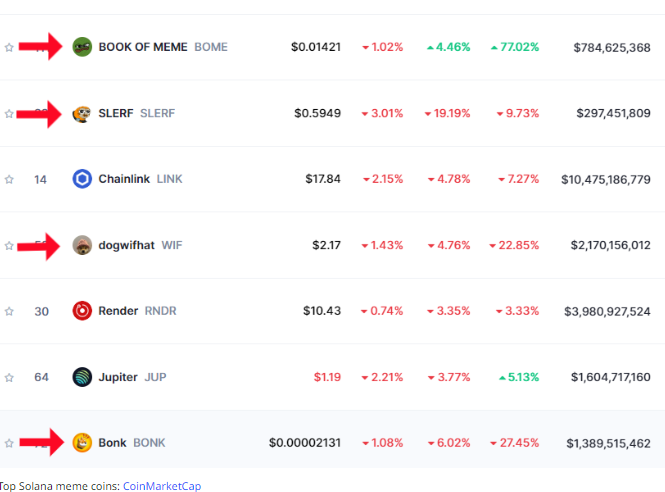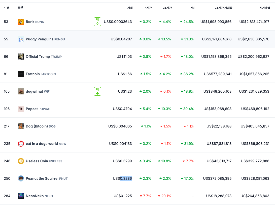 2025년 솔라나 상위 시가총액 밈코인