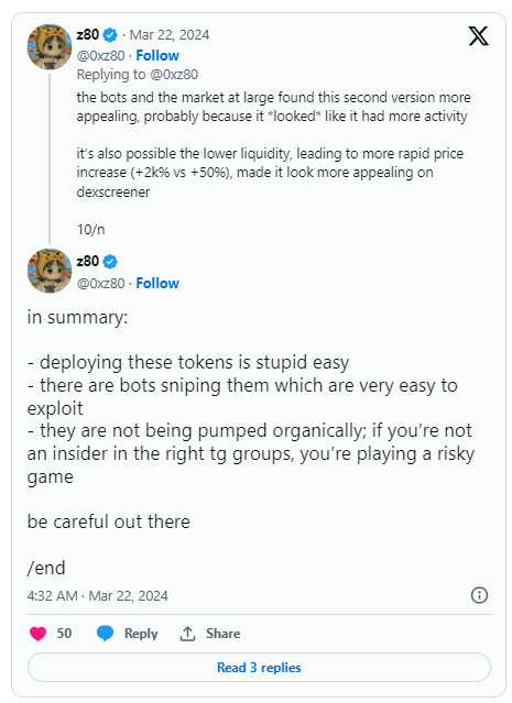 따라서 진짜로 활동하는 밈코인을 찾으려면 출시 날짜를 고려하는 것이 중요합니다. 많은 분석 도구가 알고리즘을 기반으로 상위 상승자, 거래량, 유동성을 표시할 수 있습니다. 이러한 지표는 트레이딩 봇과 펌프 앤 덤프(pump-and-dump) 그룹의 영향을 많이 받을 수 있습니다. 이 때문에 솔라나 밈코인을 선정할 때는 해당 코인이 출시된 지 어느 정도 시간이 지났는지 살펴봐야 합니다.