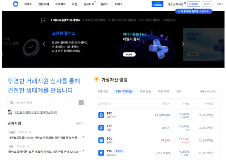 이처럼 다양한 거래소가 존재하지만 이 글에서는 국내 거래소 코인원(https://coinone.co.kr/)을 사용해 보겠습니다.