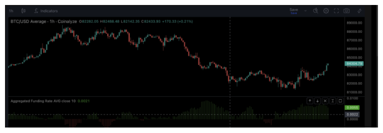 - 펀딩 비율: 높은 펀딩 비율은 과도한 레버리지를 의미하며 일반적으로 조정이 다가오고 있다는 신호입니다.