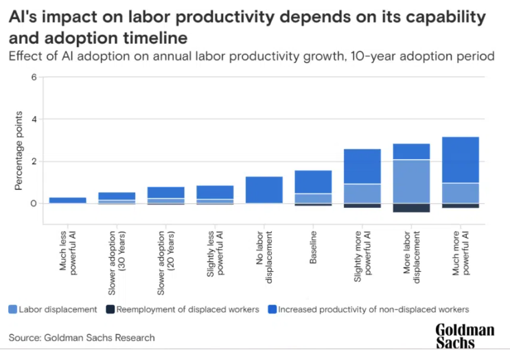 챗GPT 개발사인 오픈AI(OpenAI)와 펜실베이니아 대학교가 2023년 실시한 연구에 따르면, AI로 인해 정규직(full-time jobs) 3억 개가 사라질 수 있다고 합니다. 미국 노동력의 80%가 자신의 업무의 10% 이상에서 AI의 영향을 받을 수 있습니다.