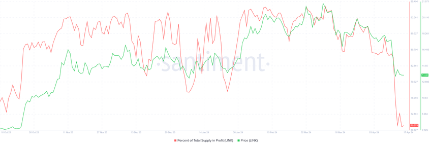 지난 며칠 동안 체인링크의 가격은 13.5달러 아래로 떨어지지 않기 위해 최선을 다하고 있습니다. 이를 막기 위해 투자자들의 지지를 받을 가능성이 높습니다. 이는 최근 조정으로 인해 LINK 공급이 수익성을 잃었기 때문입니다.