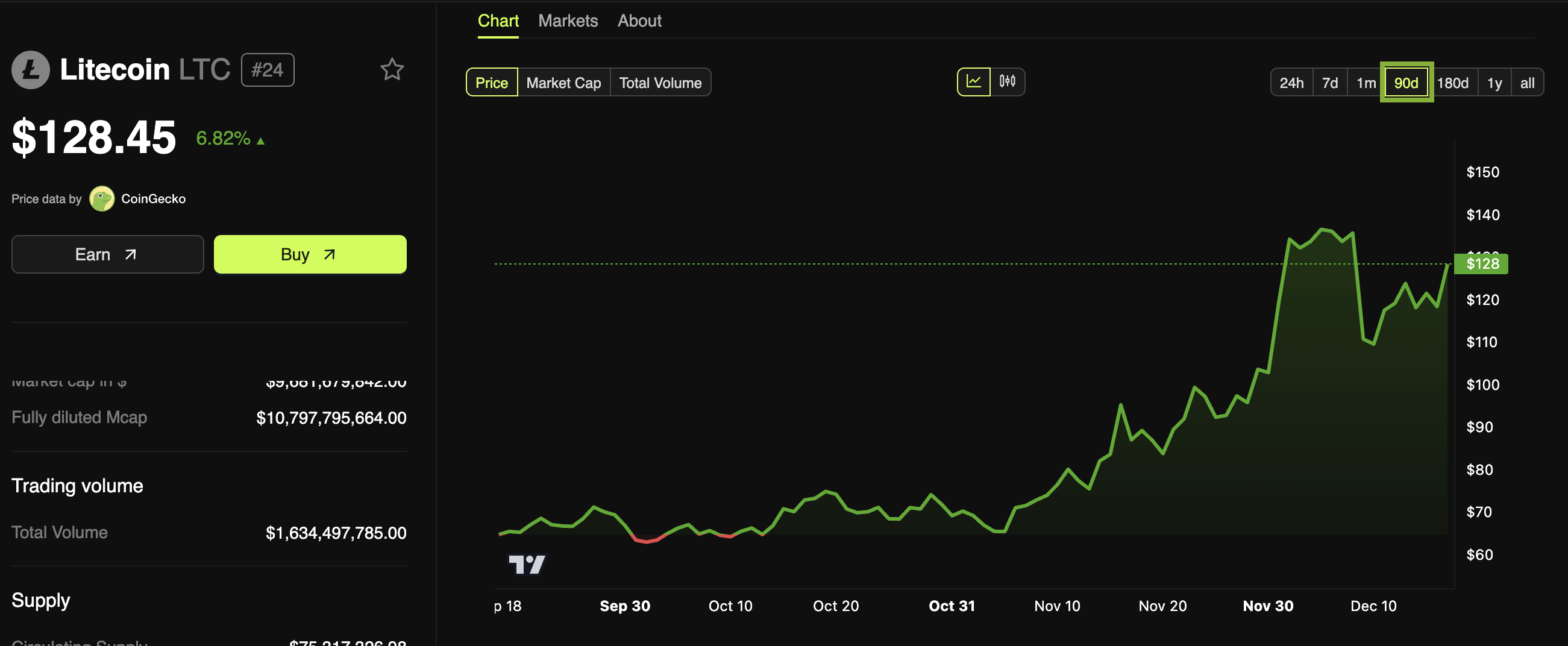이 소식 이후, 라이트코인은 하루 만에 거의 8% 상승했습니다. 두 사람은 헤데라 ETF의 가능성도 예상했습니다. 현재까지 카나리 캐피탈이 이를 신청했으며, 라이트코인 제공도 신청했습니다.