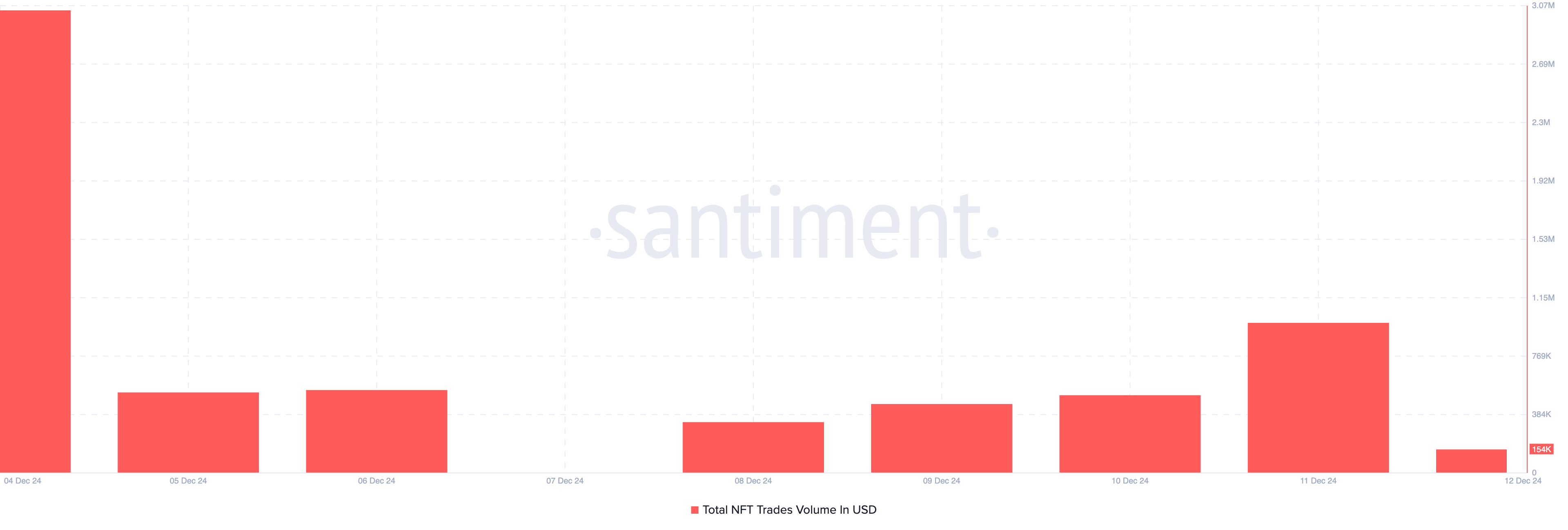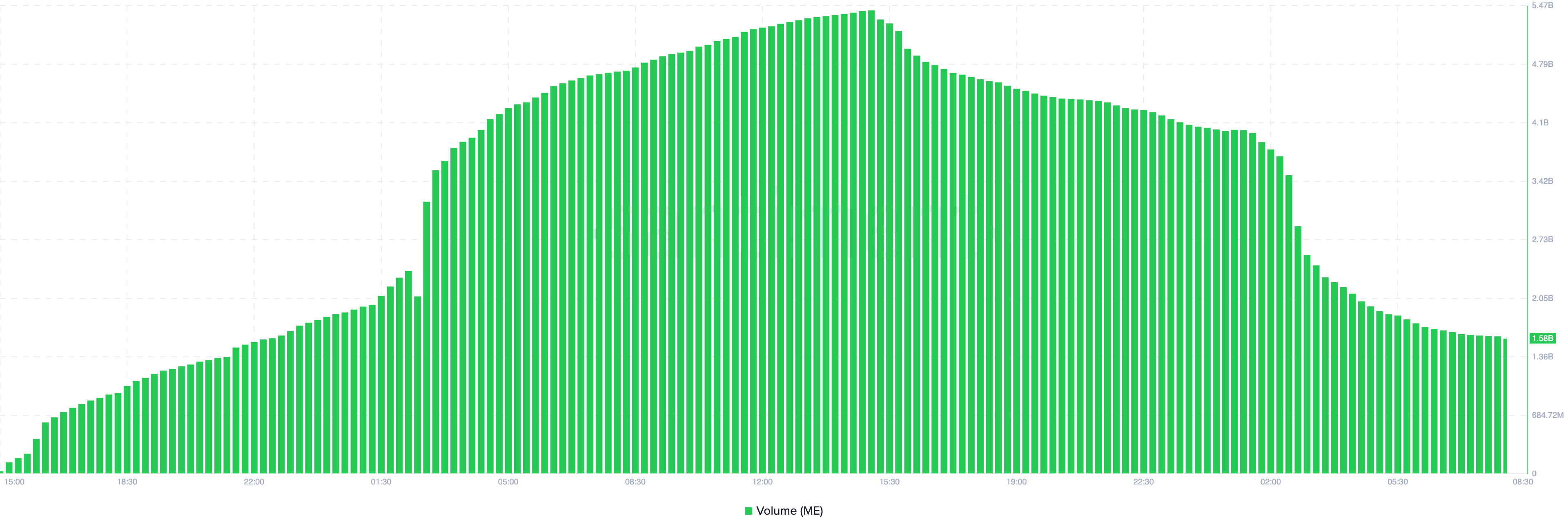 암호화폐 온라인데이터 플랫폼인 센티멘트(Santiment)의 데이터에 따르면, 매직에덴의 거래량은 12월 11일 수요일에 약 55억 달러였습니다. 현재 이 수치는 15억8000만 달러로 감소하여 약 40억 달러가 줄어들었음을 나타냅니다.