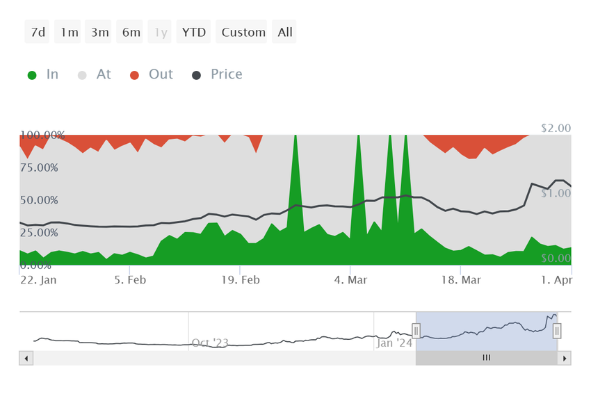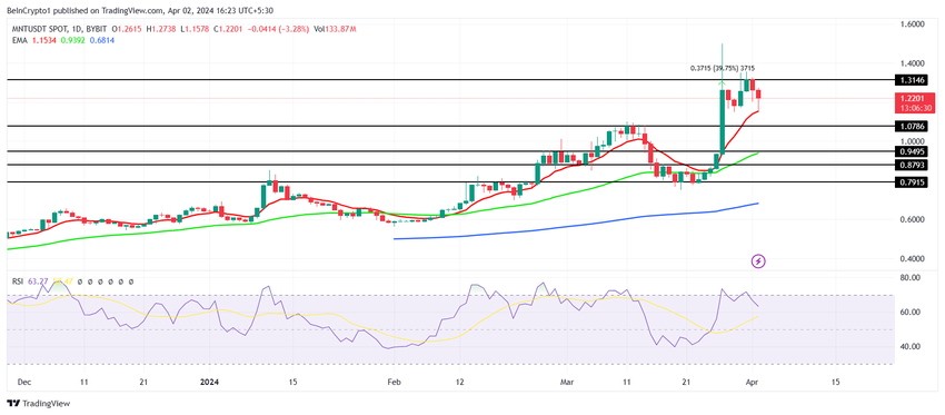 맨틀가격은 지난 주최고가인 1.31달러를 기록한 후 현재 1.22달러에 거래되고 있습니다. 이 알트코인은 여전히 50일 지수이동평균(EMA)을 지지하고 있습니다.