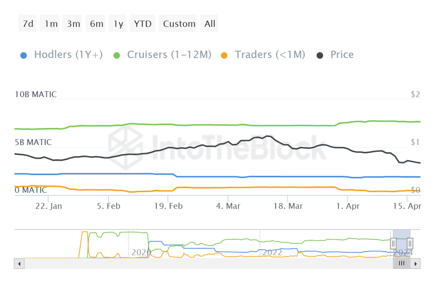 또한 단기 보유자에서 중기 보유자로 MATIC이 이전하는 데서도 신념의 근거를 발견할 수 있습니다. 전자는 자산을 한 달 미만으로 보유하는 것으로 알려져 있어 매도하는 경향이 있는 반면, 후자는 최소 1년 동안 공급을 이동하지 않는 경향이 있습니다.