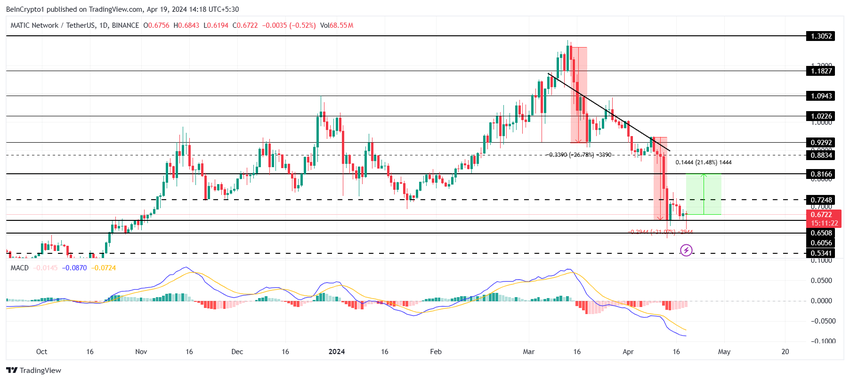 그러나 0.65달러 지지선이 깨지고 MATIC 가격이 0.60달러로 떨어지면 0.53달러까지 하락할 수 있습니다. 이 지지선을 돌파하면 강세 논리가 무효화되어 추가 손실이 발생할 수 있습니다.