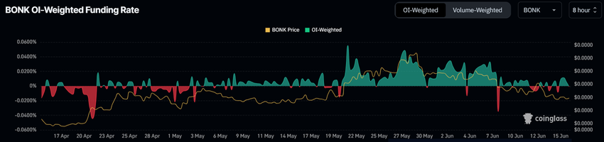 BONK의 경우 펀딩 비율은 양수에서 음수로 지속적으로 변동합니다.