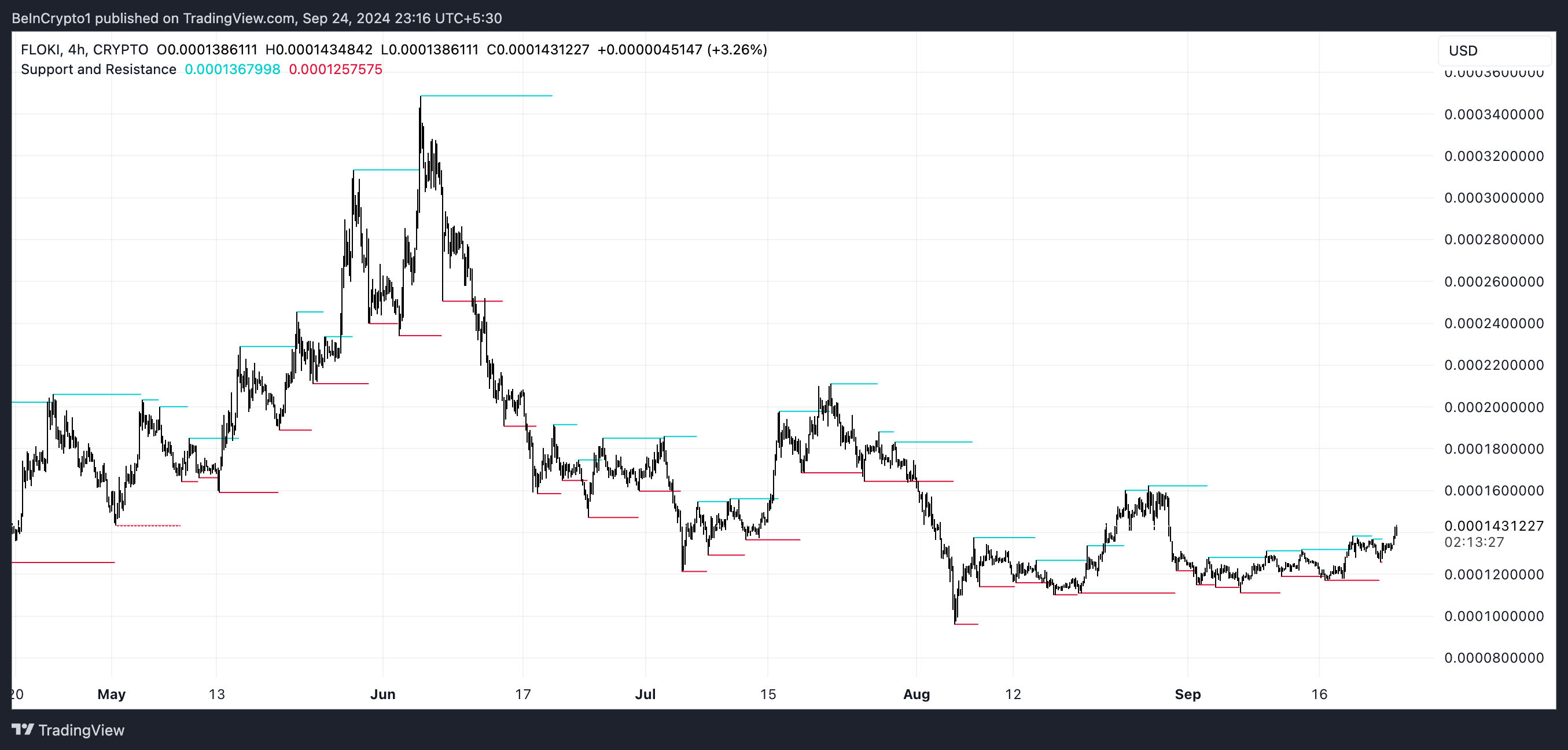 FLOKI는 0.0001651달러의 중요한 저항 수준에 접근하고 있습니다. 이는 역사적으로 토큰에 도전이 되었던 주요 지역입니다. FLOKI가 이 저항을 돌파하면 더 강한 강세 움직임을 시사할 수 있으며, 가격을 2024년 6월 이후 최고치인 0.00034달러로 밀어 올릴 수 있습니다.