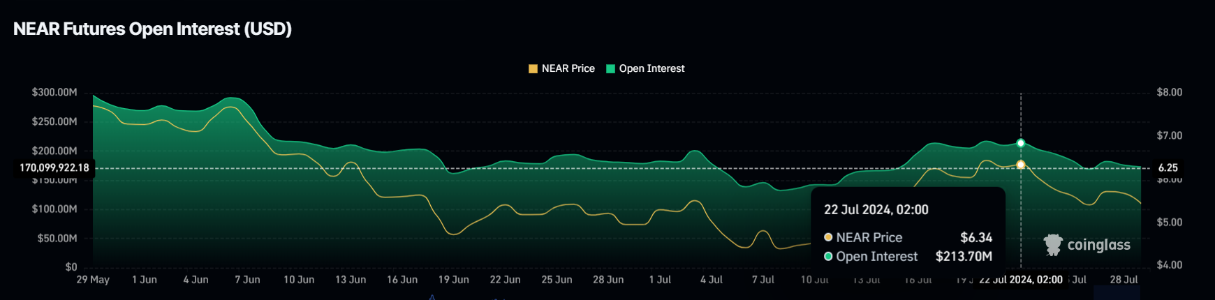 또한, NEAR의 미청산 약정도 크게 감소했습니다. 지난 한 주 동안 20% 하락하여 2억 1,300만 달러에서 1억 7,000만 달러로 떨어졌습니다.