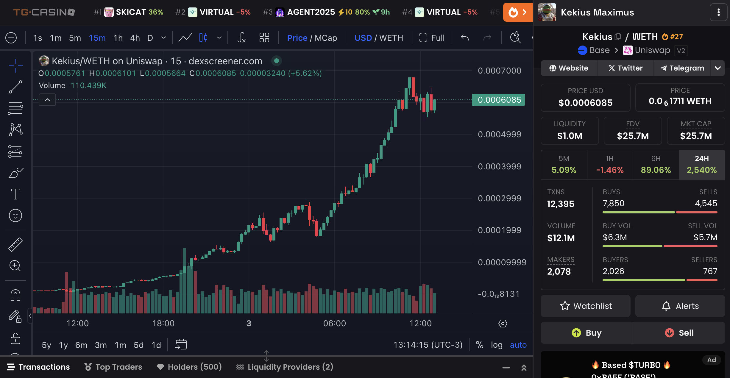 KEKIUS는 새로운 개구리 테마의 밈코인으로, 이더리움에서 데뷔했으며, 이제 베이스 체인에서 출시되었습니다. 이 코인은 500명의 보유자와 하루 1만2000건 이상의 거래로 주목받고 있습니다.